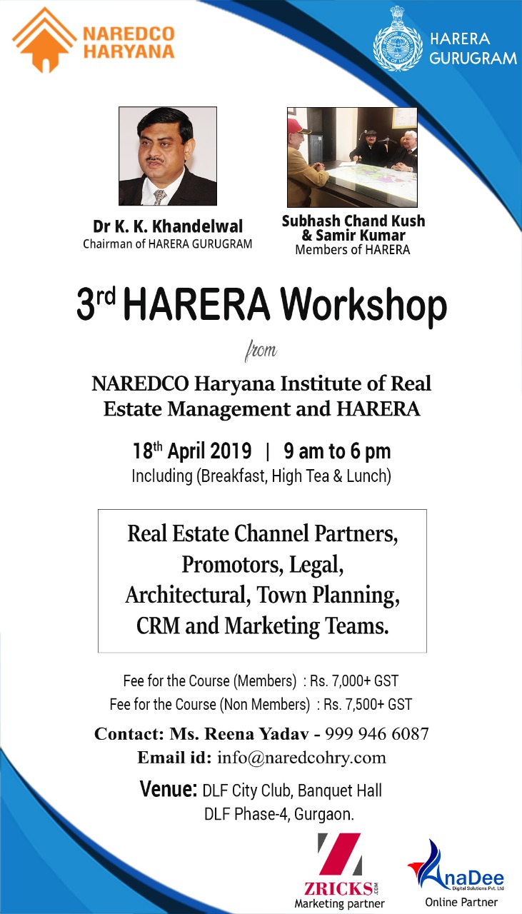 You will be pleased to know that NAREDCO Haryana is organizing its 3rd HARERA Certified Workshop for one day with HARERA Gurugram, Government of Haryana.
