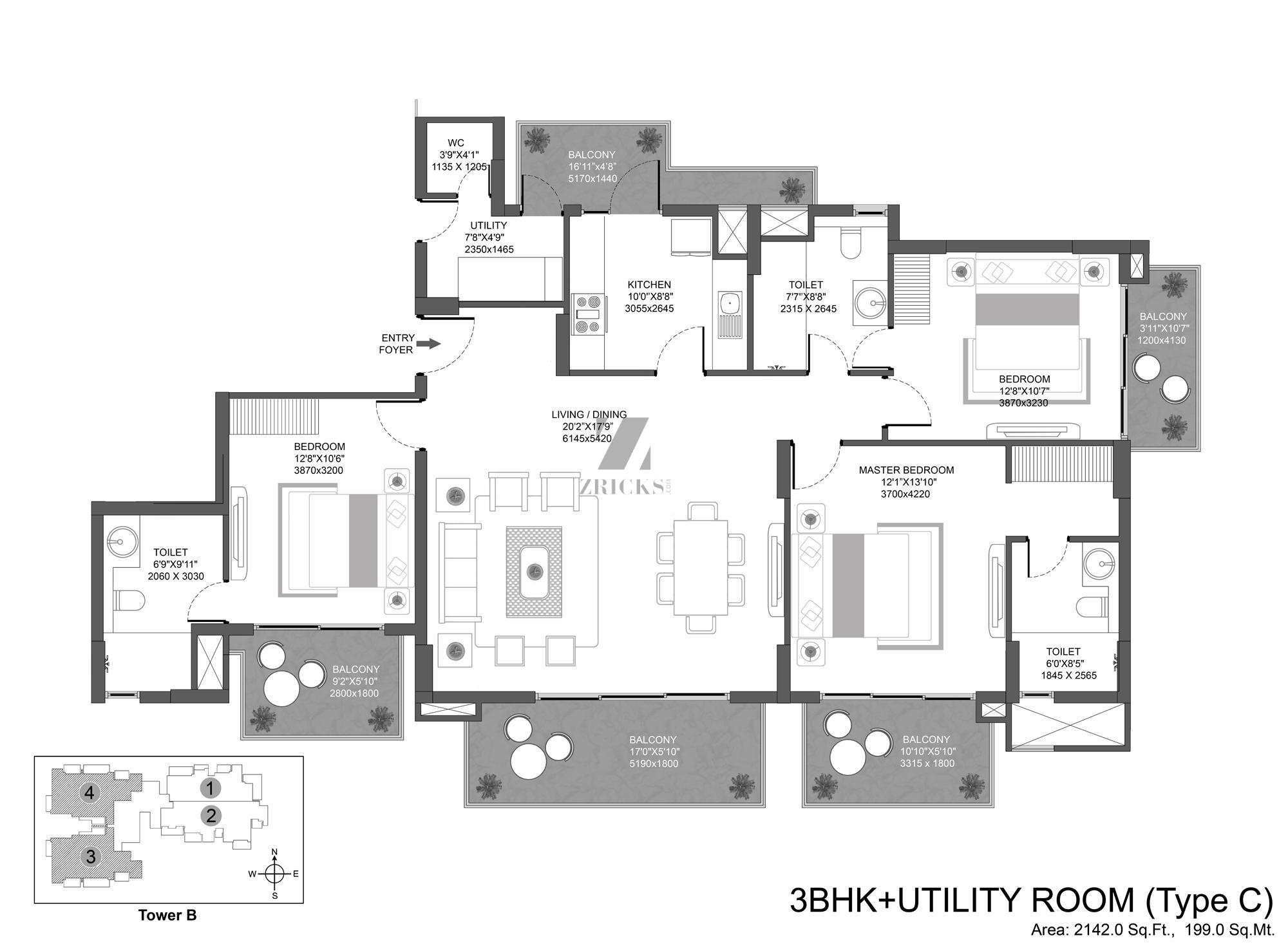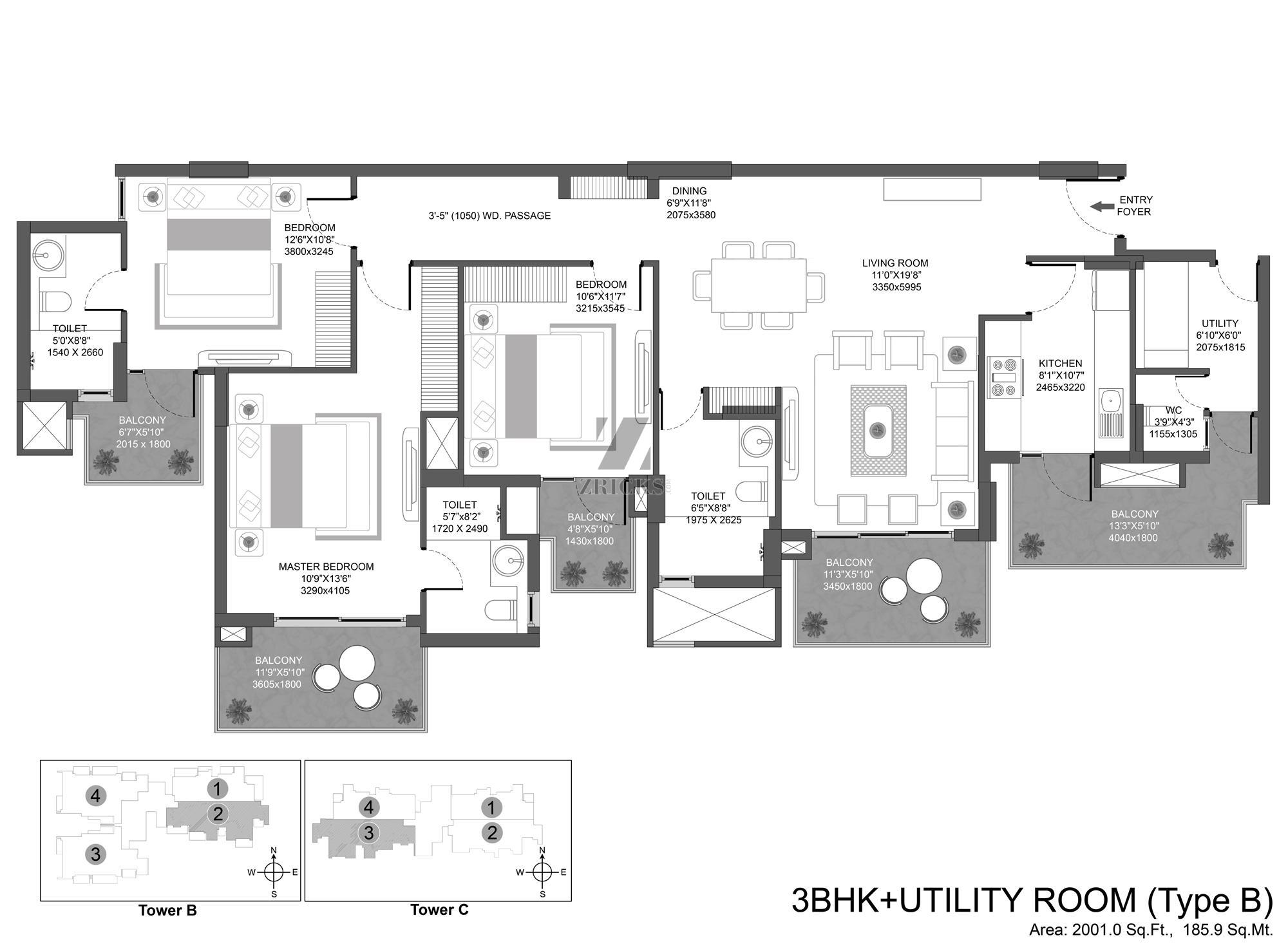 | Apartment | 3 BHK + Utility | 2001 Sq. Ft. | aspect_ratio |