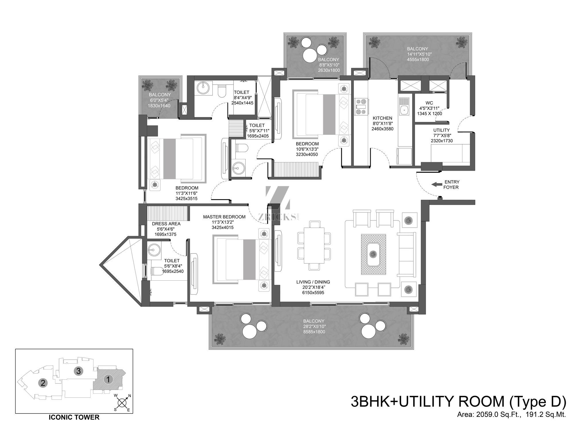 | Apartment | 3 BHK + Utility | 2059 Sq. Ft. | aspect_ratio |