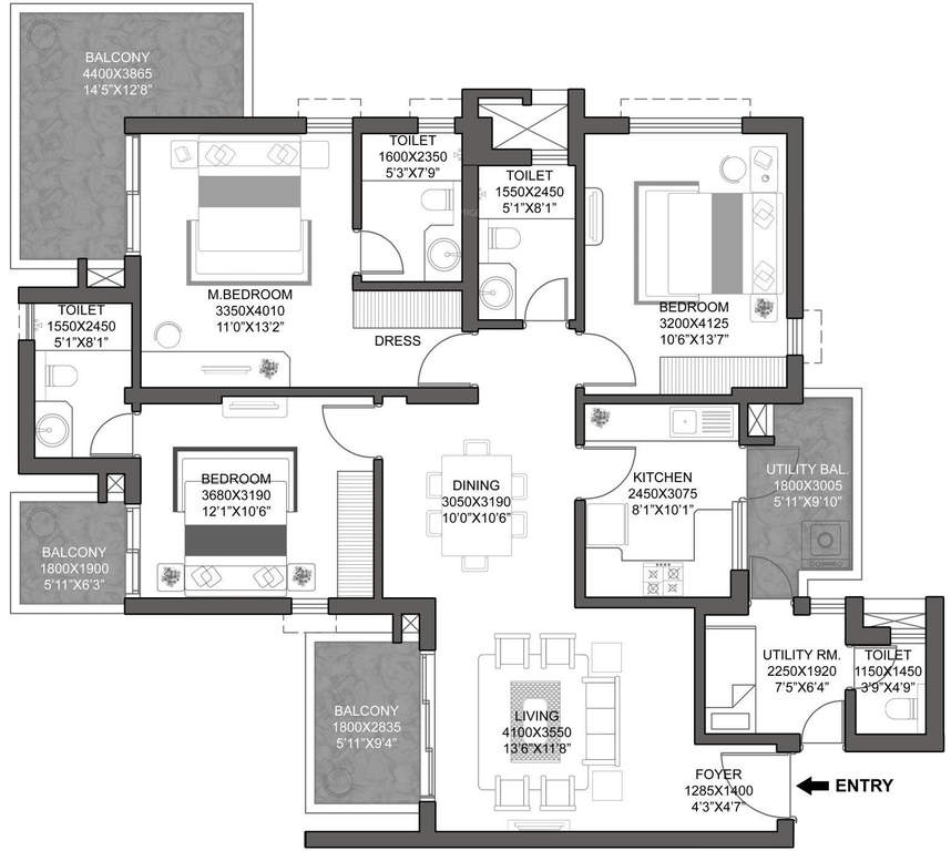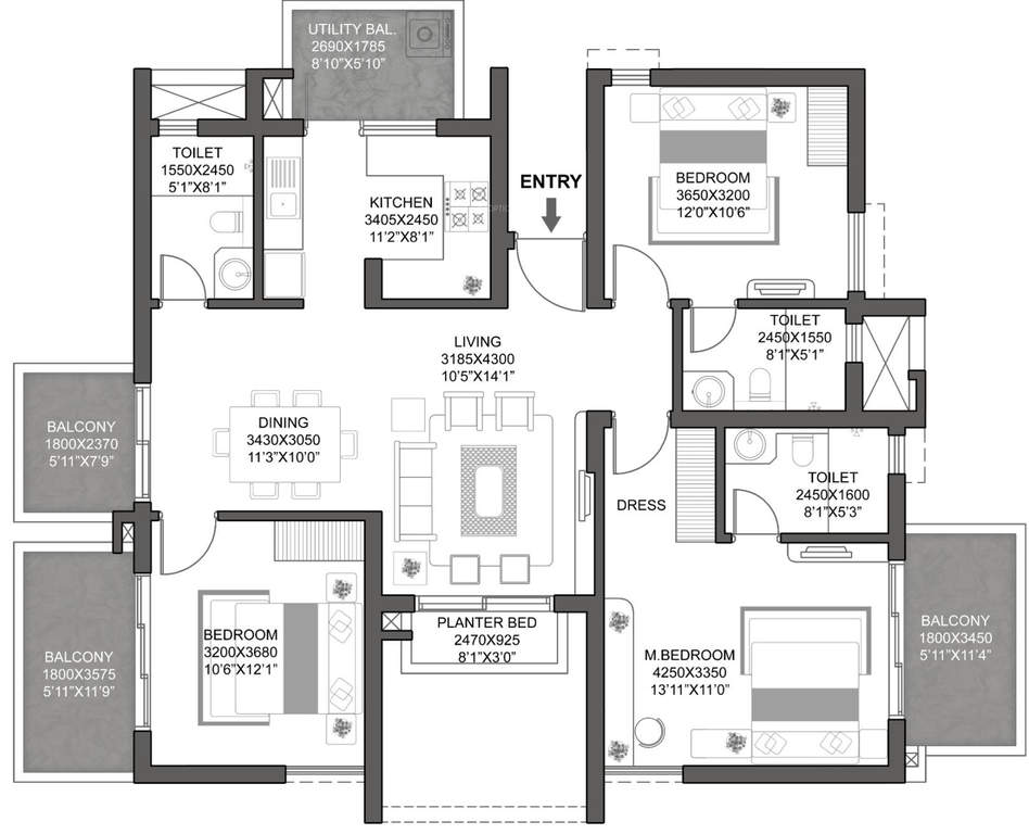 | Apartment | 4 BHK + Study + Utility | 2692 Sq. Ft. | aspect_ratio |